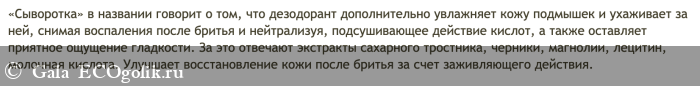 Кстати, надо упомянуть о таком ограничении: так как содержит кислоты, то следует избегать попадания прямых солнечных лучей на намазанные дезодорантом участки