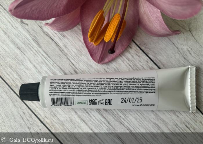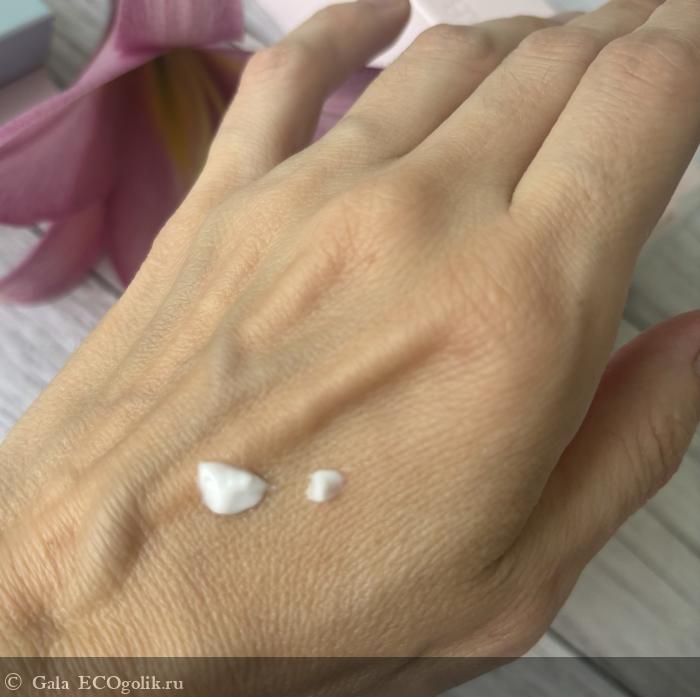 Сам крем белый, густой, размазывается равномерно, но впитывается не сразу даже на руке, которая у меня видит много всякого разного и мало ухода.