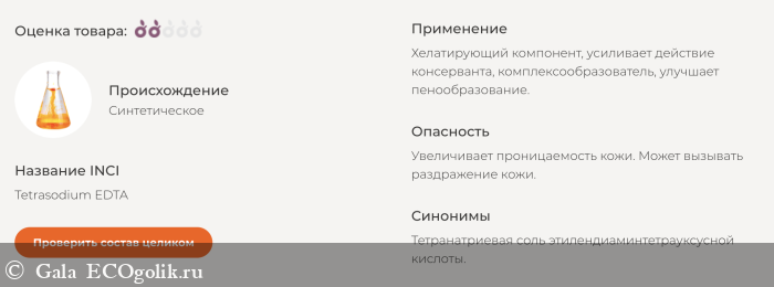 Также в составе есть тетранатриевая соль, которую Экоголик не нашел. А вот если взять иноязычный вариант с другой наклейки, то там видно, что это тетранатриевая соль ЭДТА и она Экоголиком не одобряется.