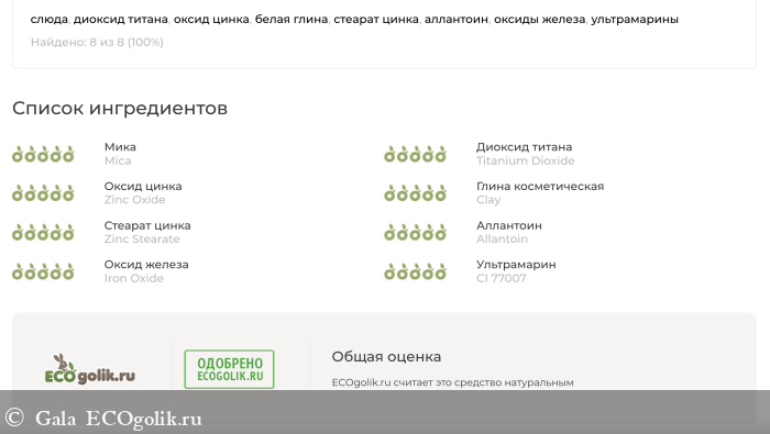 с первого раза, да еще и по 5 яблочек у каждого! Нет талька, который часто можно встретить во всяких пудровых штуках масс-маркета. Хотя я читала такую мысль, что сам тальк не страшен, если он хорошо очищен от как раз гадких и опасных примесей. Но лучше не рисковать) И в целом, нет ничего плохого в составе. Ведь никогда не знаешь, чего могут запихнуть недобросовестные производители, тем более в декоративную косметику.