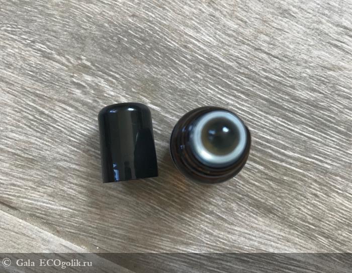 Внутри мы видим стеклянный флакончик с пластиковой закручивающейся крышкой. Далее шариковый дозатор. Это хорошо тем, что сложно разлить (ну, если только разбить флакон). Но для любителей распылять парфюм облачком на волосы и одежду может показаться неудобным. Ну и для смешивания ароматов тоже не самый практичный формат.