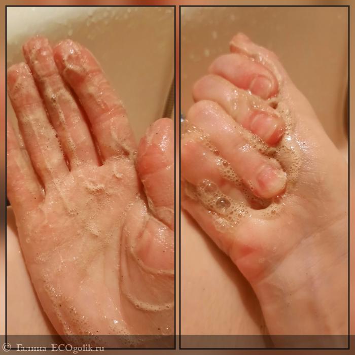 Вот если трогать скраб, то пальцами ощущается мелкий помол, шершавая поверхность, если чуть-чуть посильнее надпвить им на кожу, вас ждёт сюрприз, вот любители скрабов вы прям вообще зацените)
