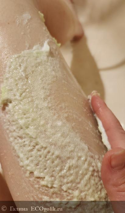 Благодаря насыщенности кремовой фазы, расход получается супер экономный. Вот сколько на фото зачерпнула - хватило на все тело)))