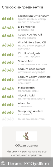 - Благодаря гликолевой кислоте скраб активизирует выработку гиалуроновой кислоты, эластина и коллагена