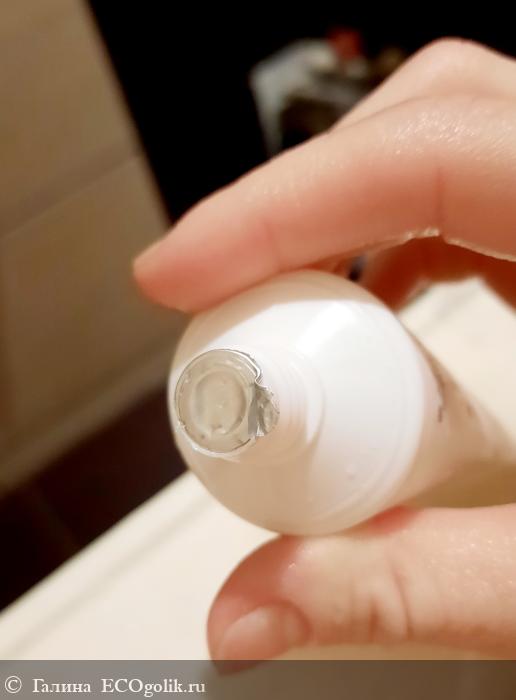 При сбрызгивании или нанесении на влажную кожу, оно сразу превращается в белое молочко и причём абсолютно нежирной текстуры
