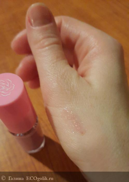 - Натуральная формула на основе минеральных компонентов не вызывает раздражения и обладает приятной нелипкой текстурой, которая со временем впитывается, оставляя легкое свечение блесток на губах