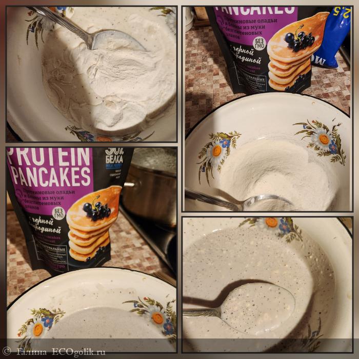 Сначала я решила приготовить оладушки, те самые панкейки)) все развела по порции как положено в инструкции и добавила кефирчик)