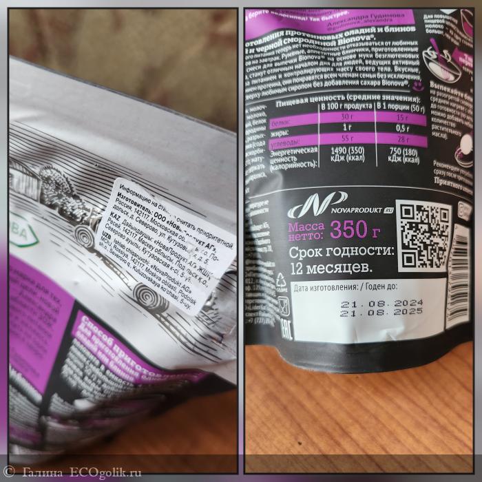 Мука рисовая, белок молочный, сухое обезжиренное молоко, нектар агавы порошкообразный, белок яичный, порошок черной смородины сублимационной сушки, соль, разрыхлитель – гидрокарбонат натрия (сода пищевая), антиокислитель – аскорбиновая кислота, ароматизатор натуральный