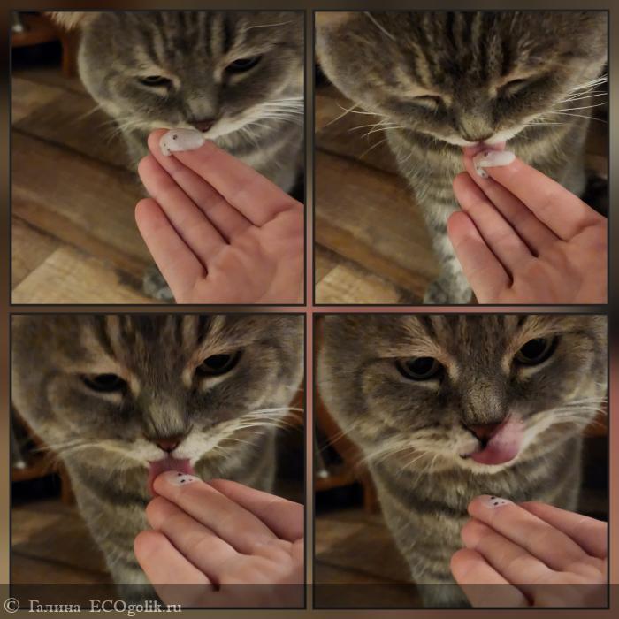 Ну и главный пробователь снял пробу- проба прошла успешно))) протеин с пальца исчез, мордочка довольная))