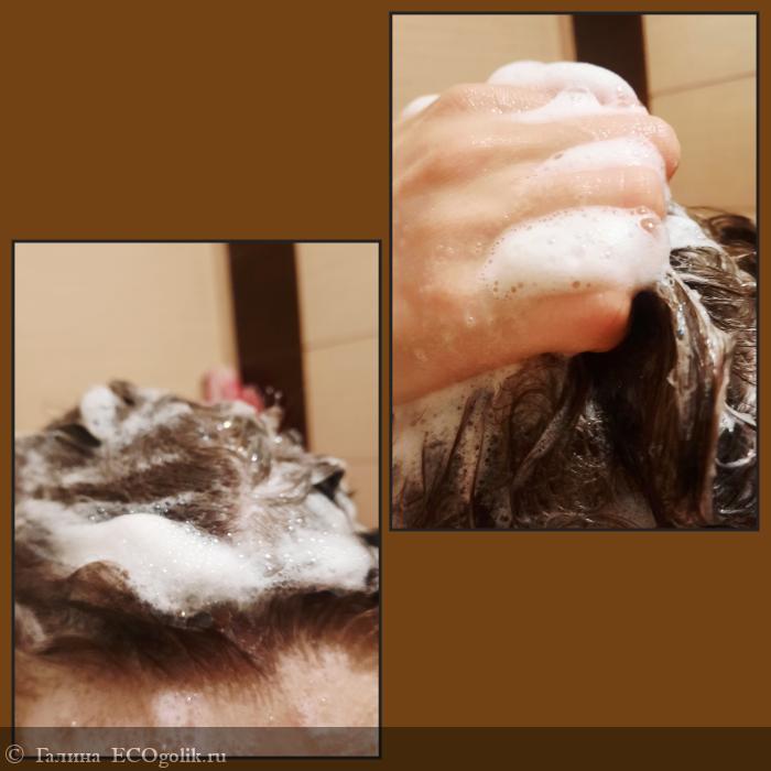 Пенится шампунь очень хорошо, я всегда промываю волосы на 2 раза когда мою через день или два, а этот шампунь подходит для ежедневного применения, и когда у нас слишком жарко, я мою голову каждый день