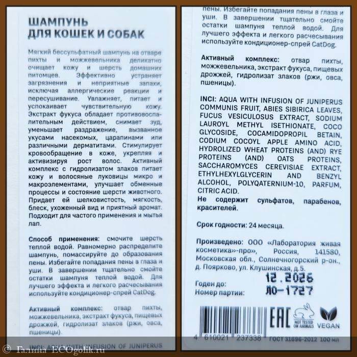 - Мягкий бессульфатный шампунь на отваре пихты и можжевельника деликатно очищает кожу и шерсть домашних питомцев