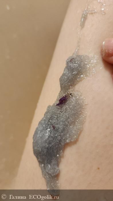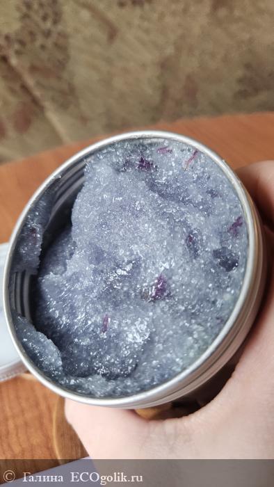 Текстура выглядит завораживающе) помимо скраба и желе внутри ещё и цветы лаванды))
