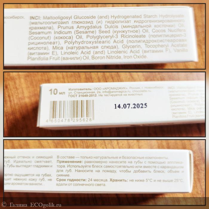 Имеет приятную густую текстуру: комфортно ощущается на губах, не растекается, не скатывается. Не сушит нежную кожу губ, не образует липкой пленки. Обладает манящим ароматом ванили- абсолютно точное описание текстуры и аромата- выглядит и ощущается вкусно)))