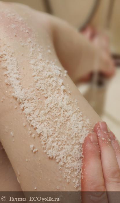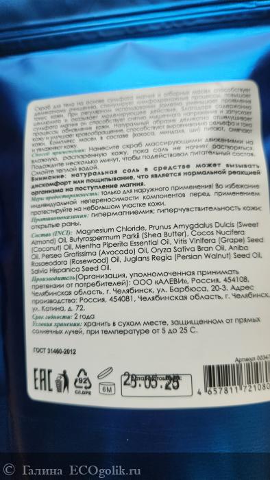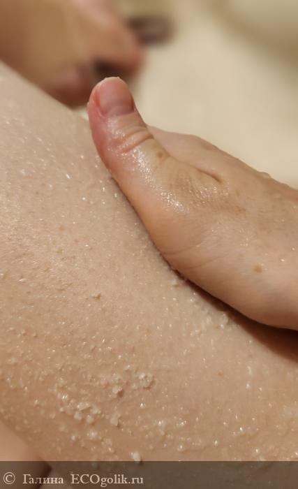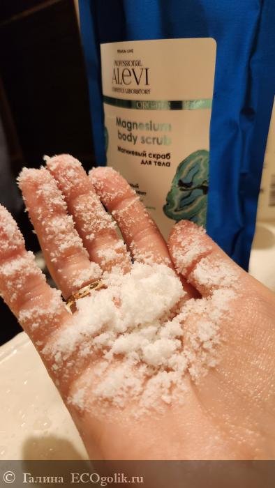 - Скраб для тела на основе сульфата магния и отборных масел способствует деликатному очищению
