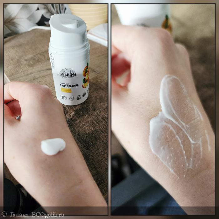 Крем белоснежного цвета, текстура однородная, по ощущениям не слишком плотная, но при нанесении чувствуется более плотный состав, как у питательного крема