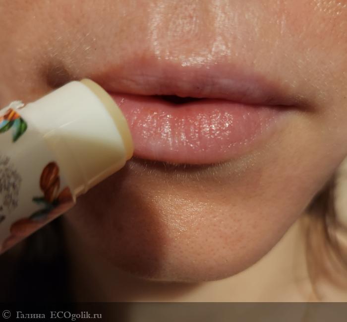 Он помогает им не обветриваться, увлажняет, питает, даёт витаминки, в принципе люблю Миндаль и он очень полезен для кожи, особенно возрастной