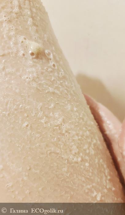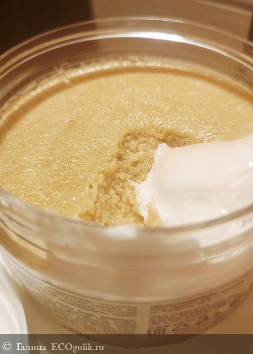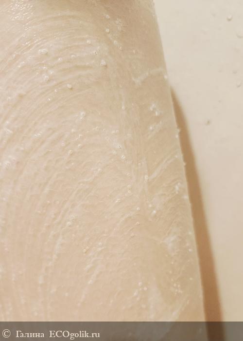 Скраб состоит из двух частей - кремовой и скрабирующей, благодаря этому вы можете регулировать жесткость, смешивая эти части. После использования скраба нет необходимости дополнительно увлажнять кожу - и это абсолютно правда)) Кожа мягко скрабируется благодаря смешиванию с кремом, отлично, бережно очищает кожу, легко смывается и оставляет её бархатной))