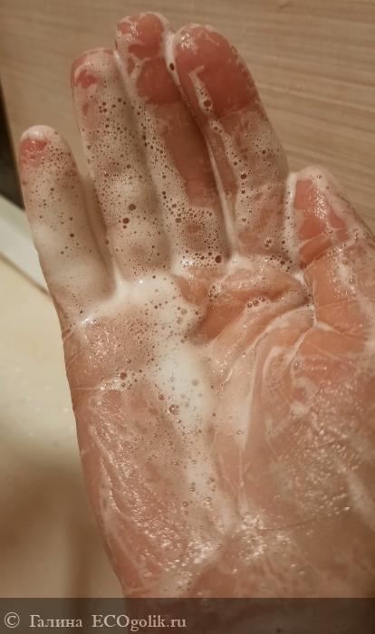 После массирования частички сахара растворяются и превращаются в объемную пенку, которая моет волос