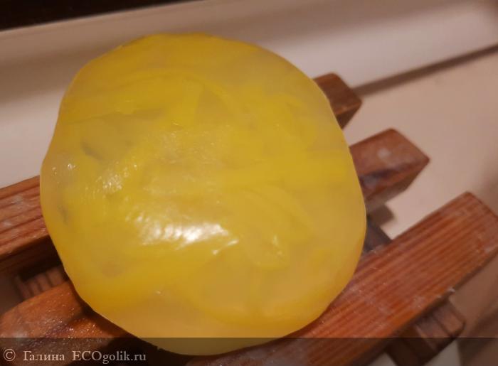 Сверху на мыльце красуется бумажная этикетка с информацией по составу, производителю, объёму, дате производства