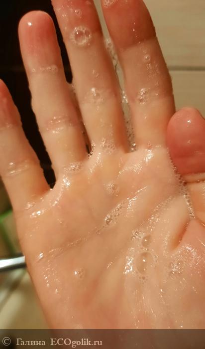 Пенится в меру, очищает качественно, кожу не сушит)удобно держать в руке, не выпрыгивает)