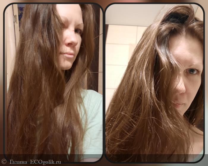 Волос не пушится, просто рассыпчатый, так приятно его трогать руками и главное хочется. Кончики не пушатся (использовала в паре с кондиционером амла от мом)