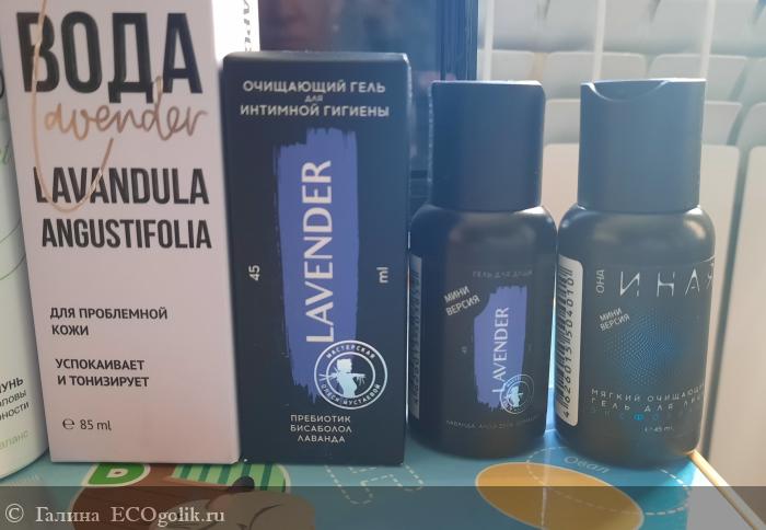 Плюс в наборчике гель для интимной гигиены, отличная штука и универсальный)) гель экфолиант в миниатюре, который я использую в качестве пилинга для кожи головы (таких штук мало не бывает), и гель для душа lavender мини -версия, его еще не пробовала))