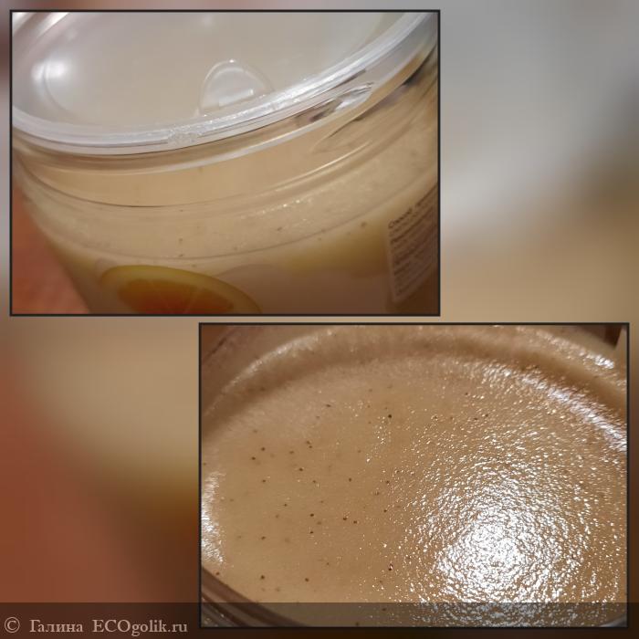 Если в скрабе манго сводит с ума аромат именно манго, то здесь он прям заинтересовывает тебя подумать и пофантазировать о чем-нибудь приятном)))