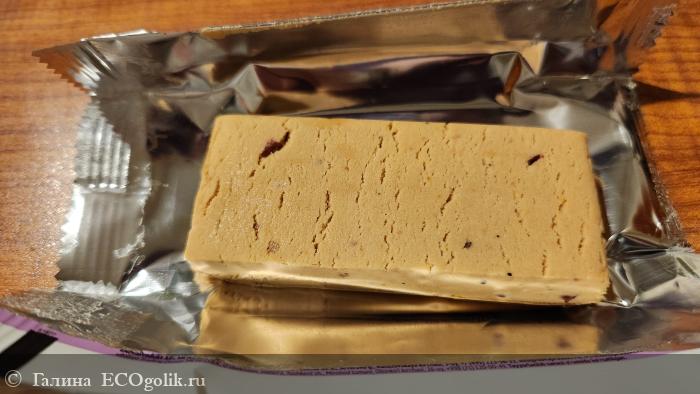 Цвет самого батончика приятный, как у пирожное, видны вкрапления ягодки
