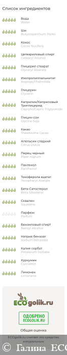 Крем-баттер имеет сливочную текстуру, которая тает при контакте с кожей. Комплекс твёрдых масел ши, кокоса и какао богат жирными кислотами, витаминами и микроэлементами