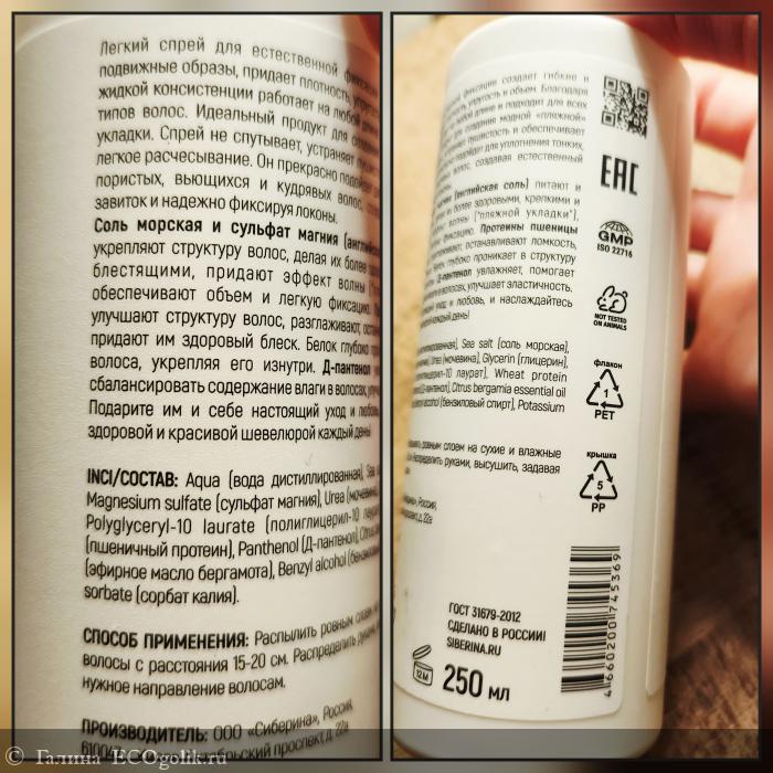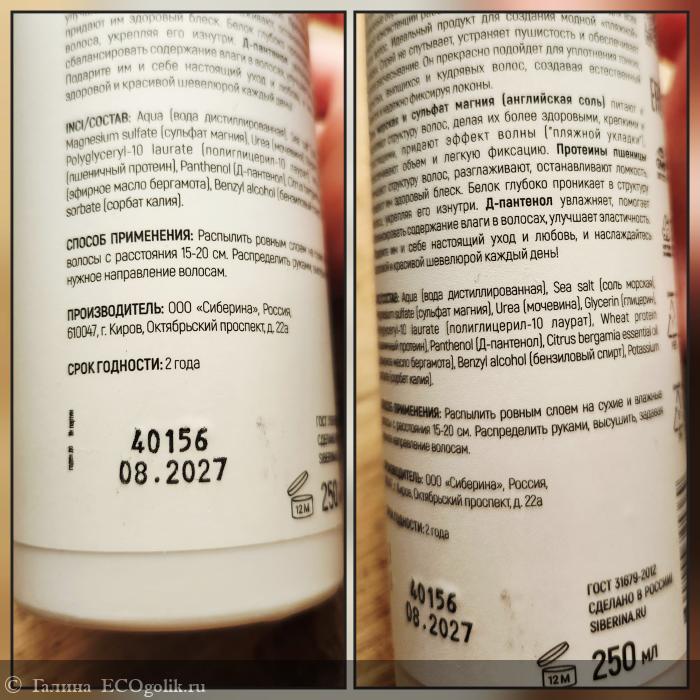 Справа с солью волосы плотные тяжёлые, слева без спрея легкие и воздушные, поэтому для зимы я выберу без средства, а вот летом он точно пригодится делать красивую пляжную волну, тем более летом в течение дня можно без проблем сбрызгивать волосы гидролатом, водой и причёска снова поправляется))