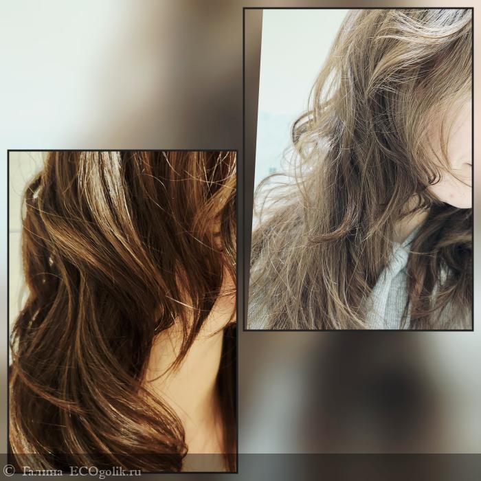 Слева мокрый волос, справа уже высушенный