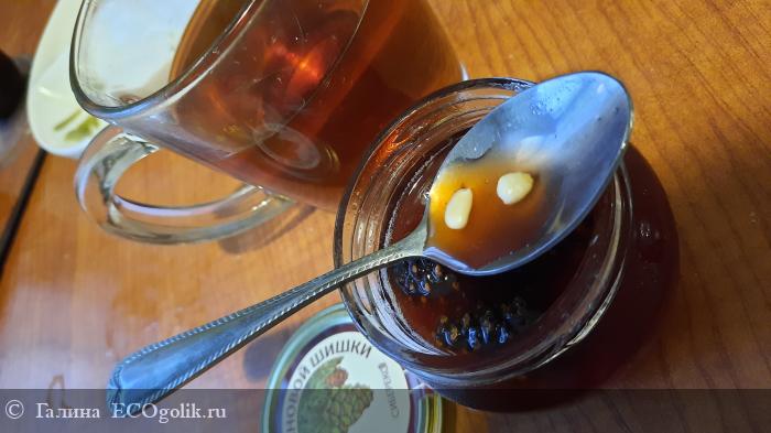 А также у бренда есть варенье из сосновых шишек с кедровыми орешками прям в баночке вместе, а я соединила свое варенье и отдельно орешки, вкуснятина