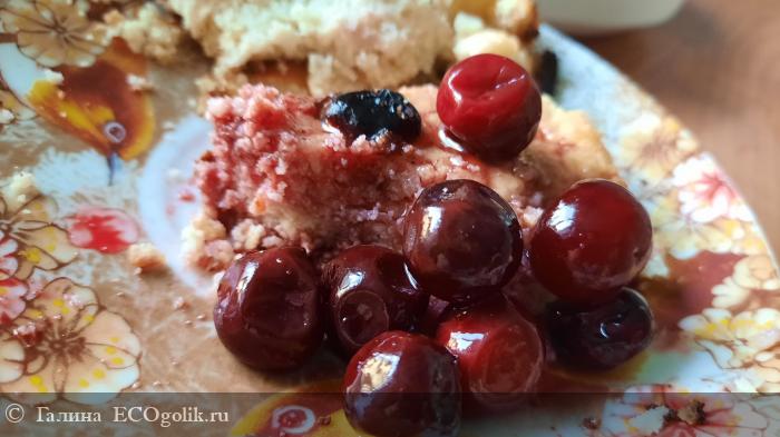 Приготовила творожную ватрушку на кокосовой муке (тоже обязательно расскажу рецептик), полила ее вареньем из сосновых шишек и сверху свежую вишню, огонь получилось по вкусу, причем как полноценный торт, только ничего вредного, даже мой маленький вредина заценил, но пришлось уговаривать минут 5 попробовать