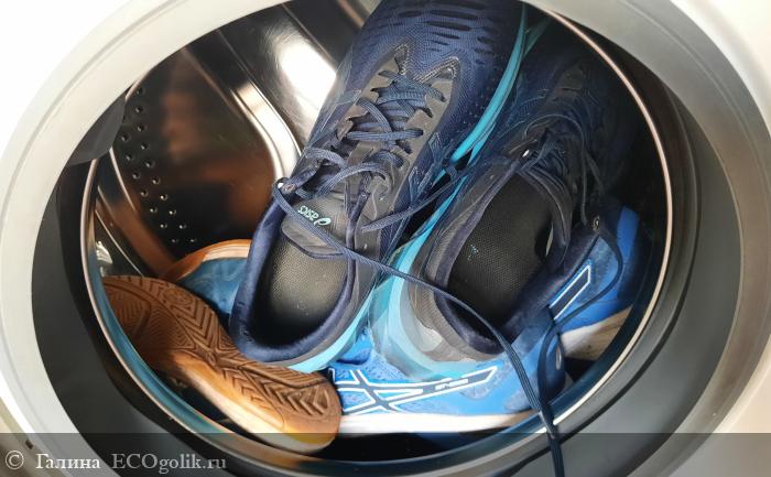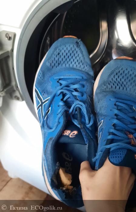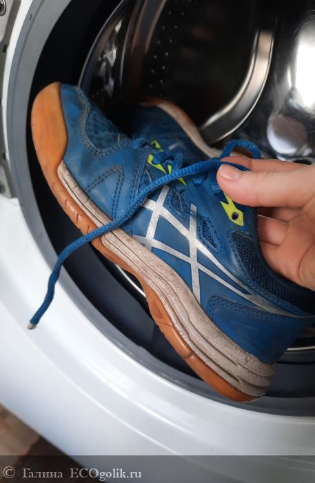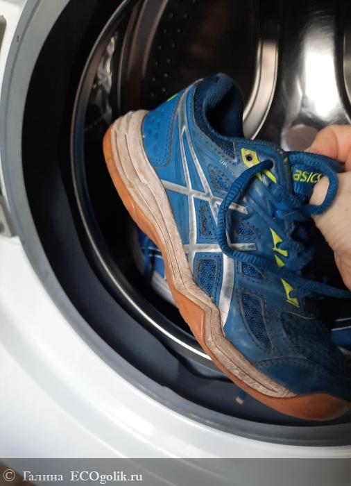 Кроссовки мужа в принципе отстирал неплохо темные, а у сына немножко хуже, и поэтому справился он так скажем, ну на четвёрочку, например, до этого у меня был порошок стирал без всяких. И он очень классно отстирывал именно кроссы