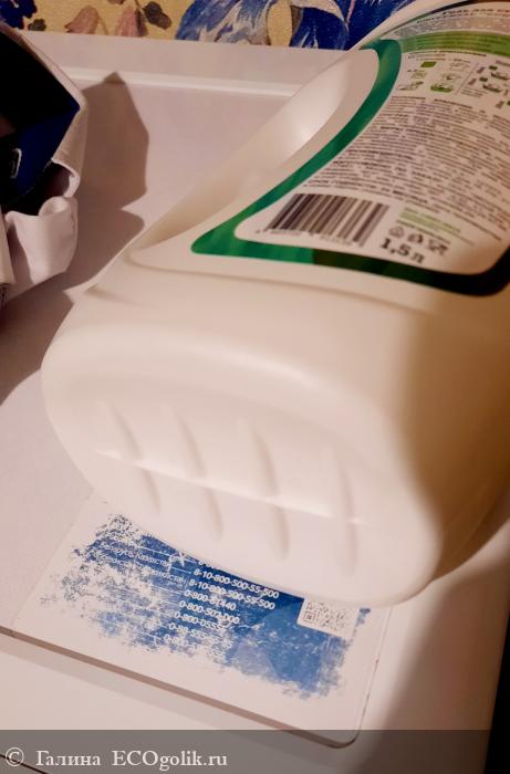 - Крышка тоже удобная она дже выступает мерным стаканчиком и плюс внутри есть специальный носик, который позволяет не проливать средство