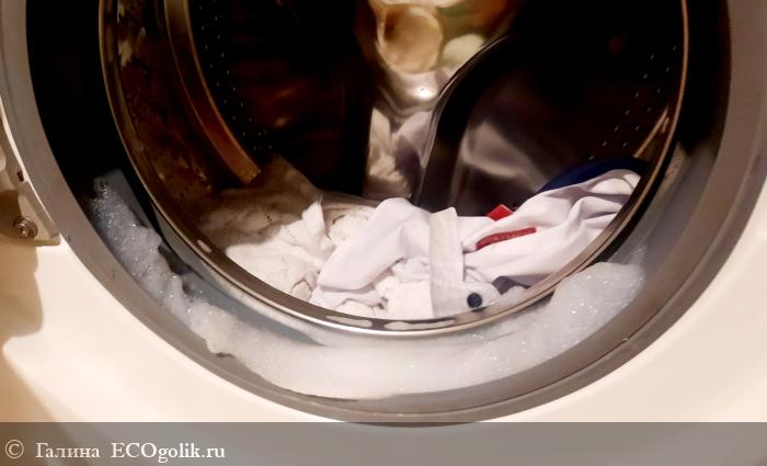 - Интересно, что когда я стираю кроссовки или небольшую партию вещей, пены много. А когда больше белья, то меньше