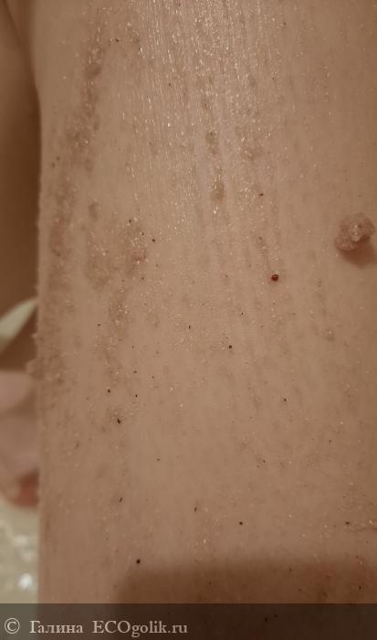 Вот это вообще такой кайф, когда ты разносишь его по телу, он так за тобой вот этот комочек скользит, сахар начинает таять, ты видишь эти сверкающие крупинки, масляные переливы и капли воды на них, выходишь из ванны, и знаешь, что тебе не надо мазаться кремом, что-то дополнительно делать, ты уже вышла богиня, у тебя уже все на месте, все намазано, все вкусно пахнет, все мягенько, все комфортненько, иди дальше наслаждайся или пусть наслаждаются мной
