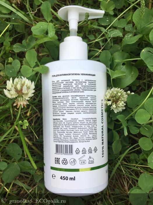 Выбрала средство данного бренда, потому что мне понравился другой их продукт – гиалуроновая пенка-мусс для умывания. Пенка оставила очень приятное впечатление, что и определило мой выбор геля для интимной гигиены, и я даже не побоялась сразу взять большой объём – 450 мл.