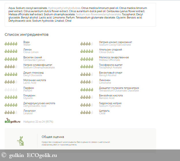 Состав геля меня тоже порадовал , но наш сервис проверки состава распознал не всё (ссылка на проверку)