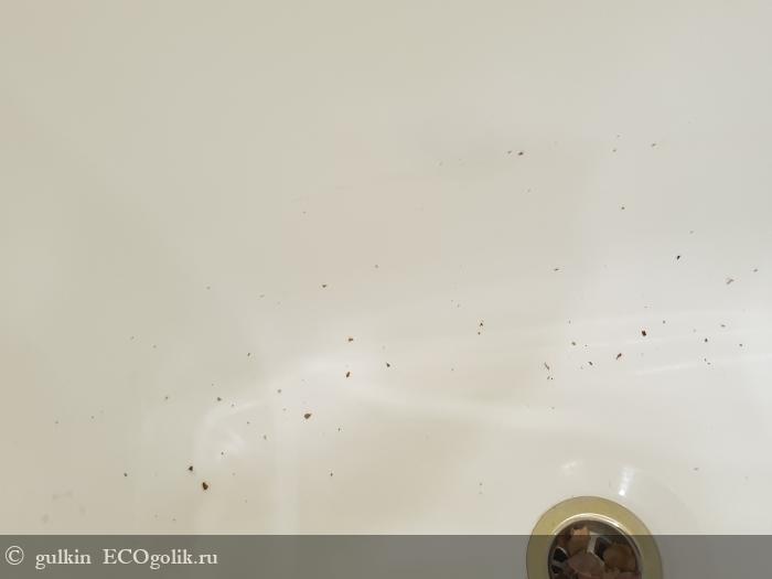 Очень переживала за жирные пятна на стенках ванны, но нет, на поверхности воды лишь тонкая пленочка, а на стенке еле заметная желтоватая полоска
