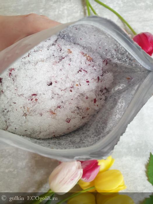 Я была приятно удивлена, вскрыв пакет- меня ожидала ароматная соль с добавлением сухих лепесточков розы