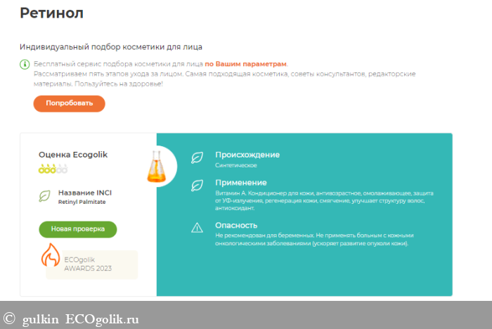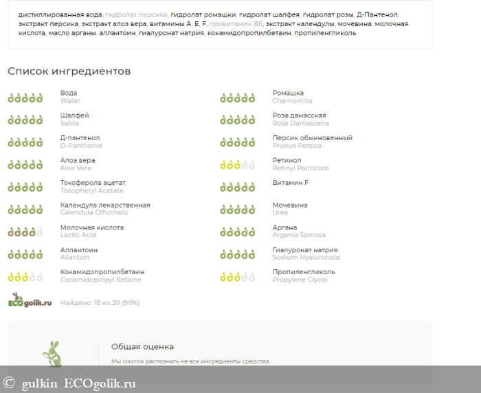 Сервис не распознал гидролат персика и провитамин B6- в полезности и безопасности данных компонентов у меня сомнений нет. Ссылка на проверку