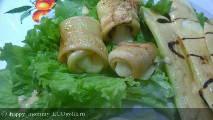 Вот и обещанный рецептик рулетиков из кабачков с моцареллой и греческим йогуртом из Вкусвилл.