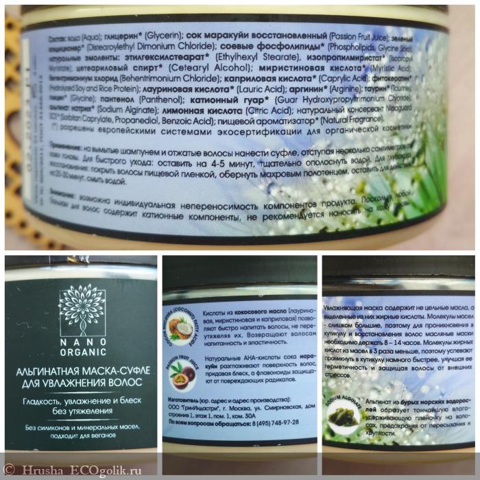 Hrusha: Альгинатная маска-суфле для увлажнения волос Nano Organic