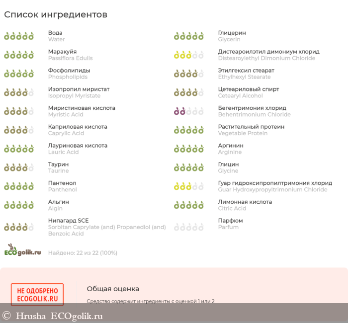 Другие два "кондиционера" сертифицированы и прошли проверку сервисом - это катионный гуар (Guar Hydroxypropyltrimonium Chloride) и зеленый кондиционер (Distearoylethyl Dimonium Chloride).