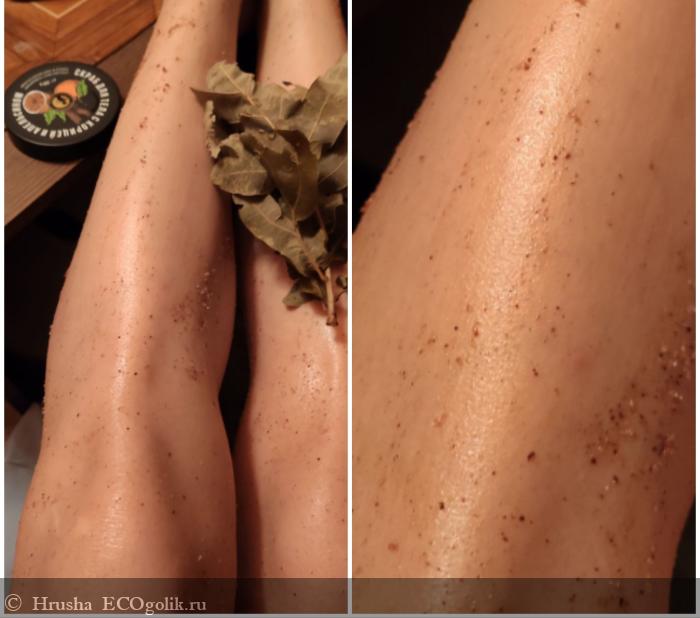 Я применила этот Скраб дома пару раз преимущественно на ноги, но потом забрала его на дачу в баню - он оказался идеален для этого и максимально раскрыл свой потенциал, поэтому туда и переехал