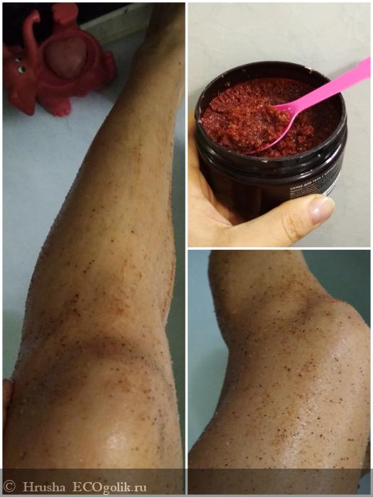 Кожа после скраба очень "чистая" - я бы даже сказала немного матовая, никаких масляных послевкусий. Но на ощупь при этом мягкая, не пересушена, гладкая до невероятия