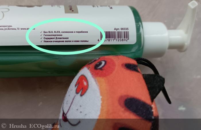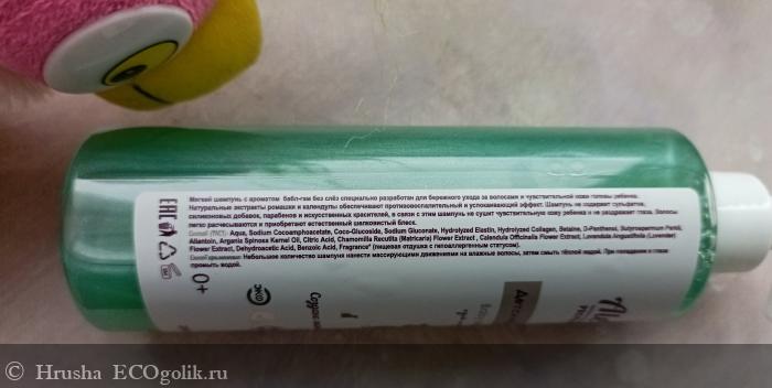- Шампунь не содержит сульфатов, силиконовых добавок, парабенов и искусственных красителей, в связи с этим шампунь не сушит чувствительную кожу ребенка и не раздражает глаза.
