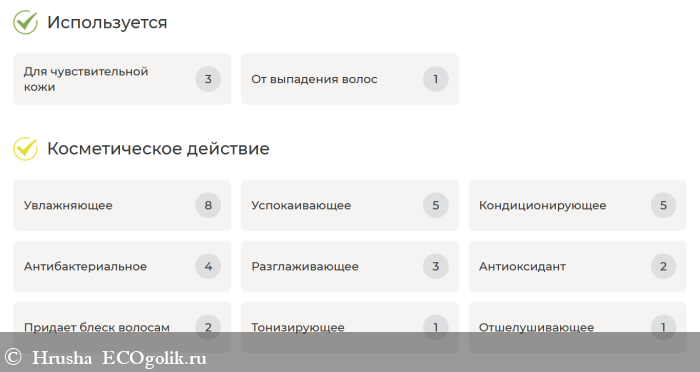 Компоновка ингредиентов при проверке "для волос"