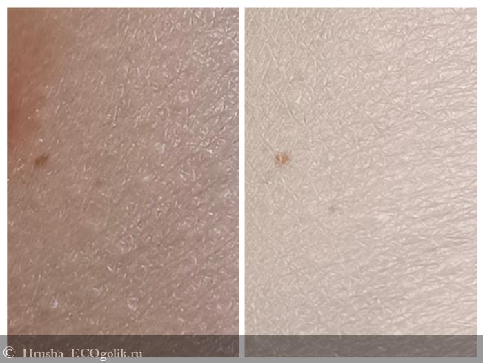 Сделала фото до и после нескольких раз на голенях - потом при увеличении увидела лучшее состояние кожи. До этого не особо ухаживала кремом, забросила, но и на сухость не жаловалась - а на фото заметила
